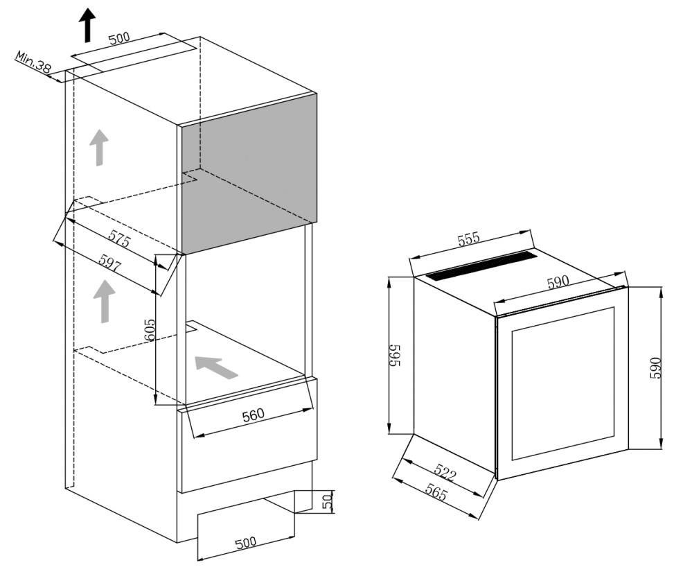 Размеры ниши (ШхГхВ): 560х575х605 мм
