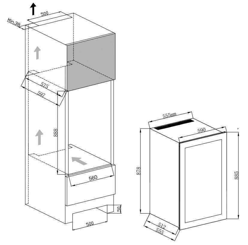 Размеры ниши (ШхГхВ): 560х575х888 мм