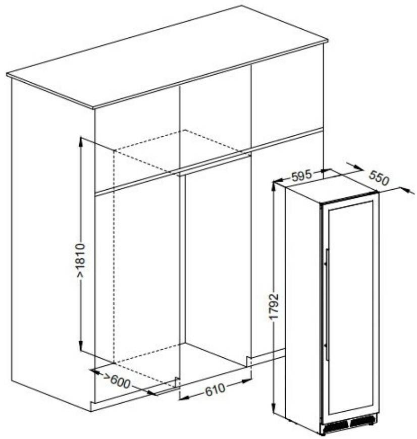 Размеры ниши (ШхГхВ): 610х600х1810 мм