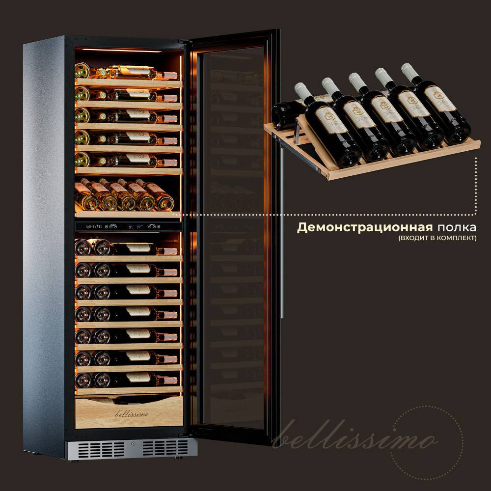 Полки выполнены из массива бука — натурального и прочного материала, который не только обладает красивой текстурой, но и эффективно гасит небольшую вибрацию, что обеспечивает абсолютный покой для вашего вина.