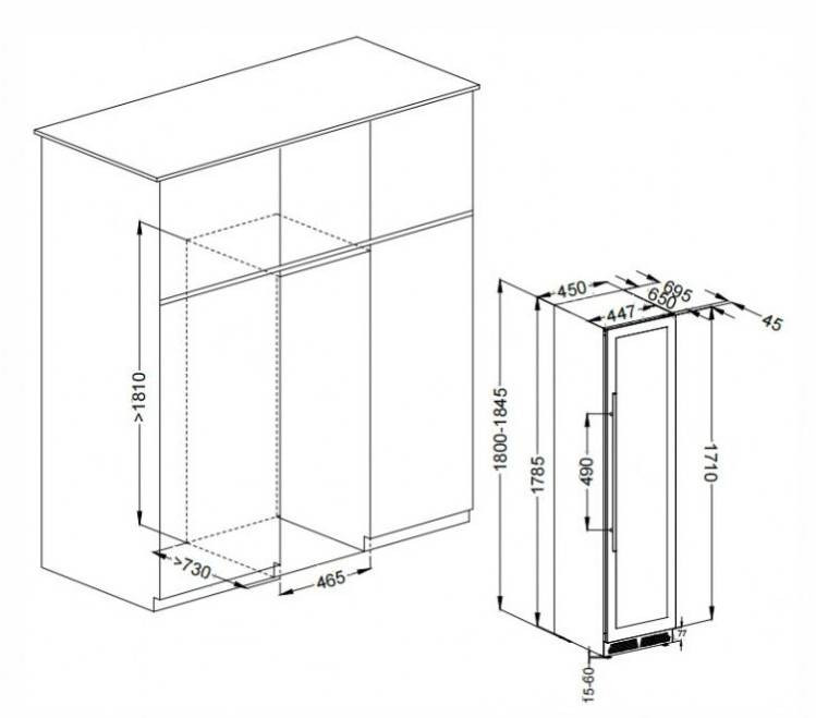 Размеры ниши (ШхГхВ): 465х730х1810 мм