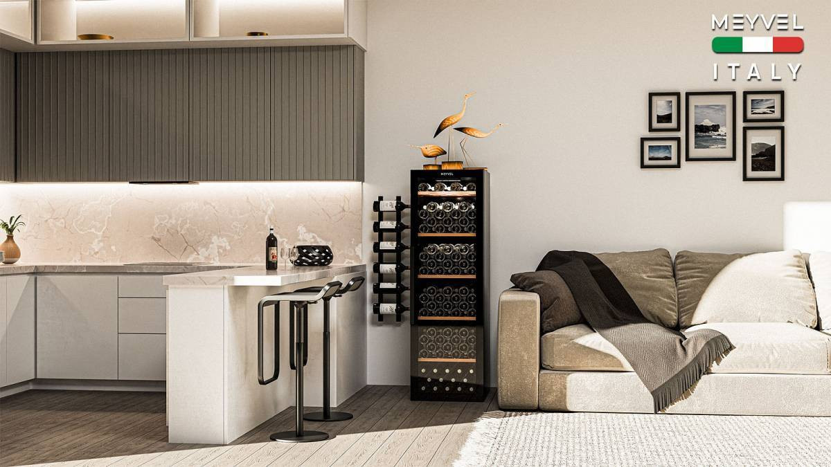 Meyvel MV133-KBF1 — это отдельностоящее устройство, которое можно разместить в любом удобном месте: в ресторане, отеле, баре или домашней винной комнате. Это не только создаёт стильный интерьер, но и обеспечивает лёгкий доступ к вину.