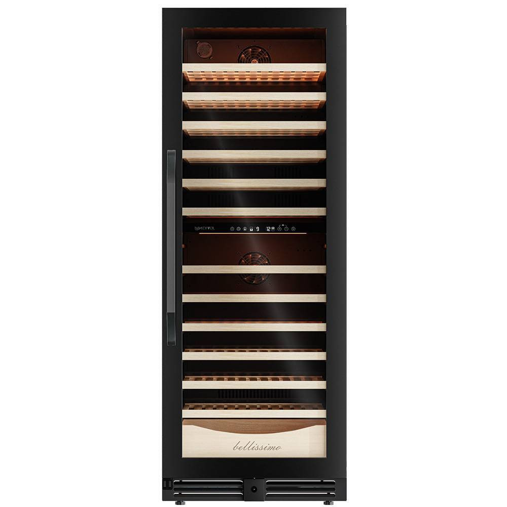 Внутреннее пространство винного шкафа разделено на две температурные зоны. Вы сможете настроить их так, что бы хранить все виды вина при идеальной температуре или установить разные значения, что бы напитки всегда были готовы к подаче. Так же в каждой зоне есть полка с увеличенным пространством. На таких полках Вы сможете разместить не только стандартные бутылки Бордо, но и Магнум. А если нужно разместить что-то побольше - то в этом случае можно вынуть одну или несколько полок. Внизу есть выдвижной ящик - в нем Вы можете хранить вино в бутылках или винные атрибуты (штопор, бокалы, аэраторы, декантеры, каплеуловители, термометры и т.д.).