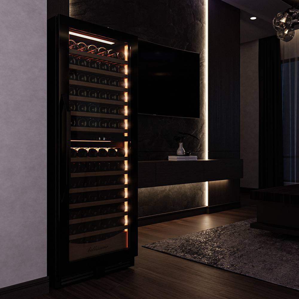 Несомненно, Вас порадует наличие панорамного светодиодного освещения (подсвечивает каждую полку), которое имеет три цвета - белый, янтарный и синий. Оно не выделяет тепло и следовательно - не нагревает бутылки с вином. Так что Вы сможете эффектно демонстрировать Вашу винную коллекцию.