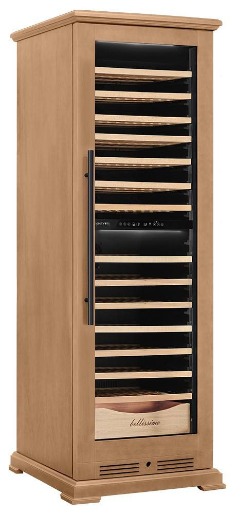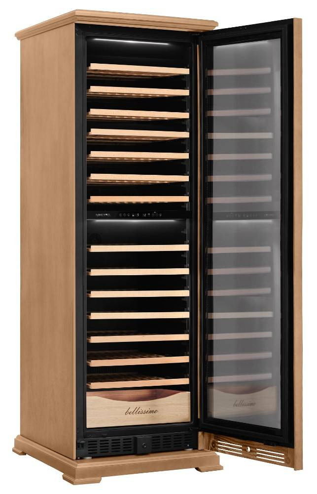 Полки выполнены из массива бука, что не только обеспечивает красивую текстуру, но и гасит небольшую вибрацию, создавая абсолютный покой для вашего вина.