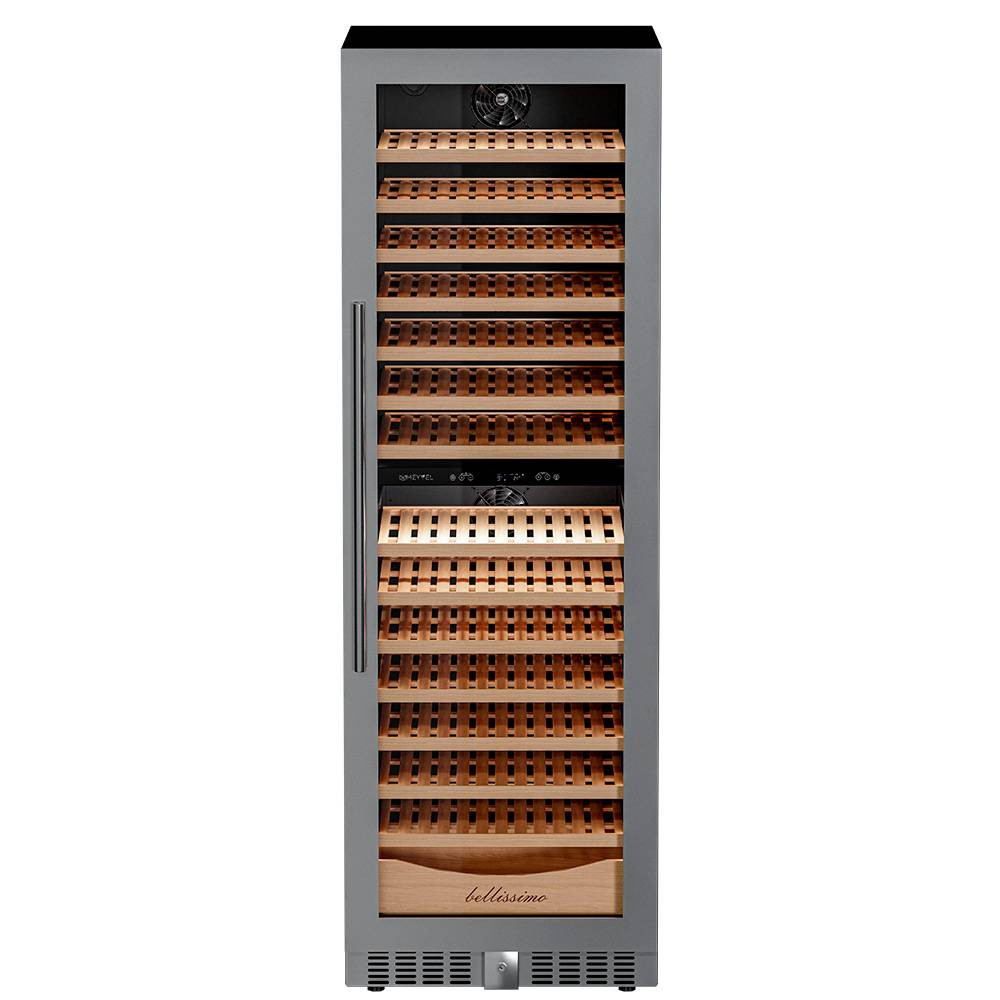 Внутреннее пространство винного шкафа разделено на две температурные зоны. Вы сможете настроить их так, что бы хранить все виды вина при идеальной температуре или установить разные значения, что бы напитки всегда были готовы к подаче. Так же в каждой зоне есть полка с увеличенным пространством. На таких полках Вы сможете разместить не только стандартные бутылки Бордо, но и Магнум. А если нужно разместить что-то побольше - то в этом случае можно вынуть одну или несколько полок. Внизу есть выдвижной ящик - в нем Вы можете хранить вино в бутылках или винные атрибуты (штопор, бокалы, аэраторы, декантеры, каплеуловители, термометры и т.д.).