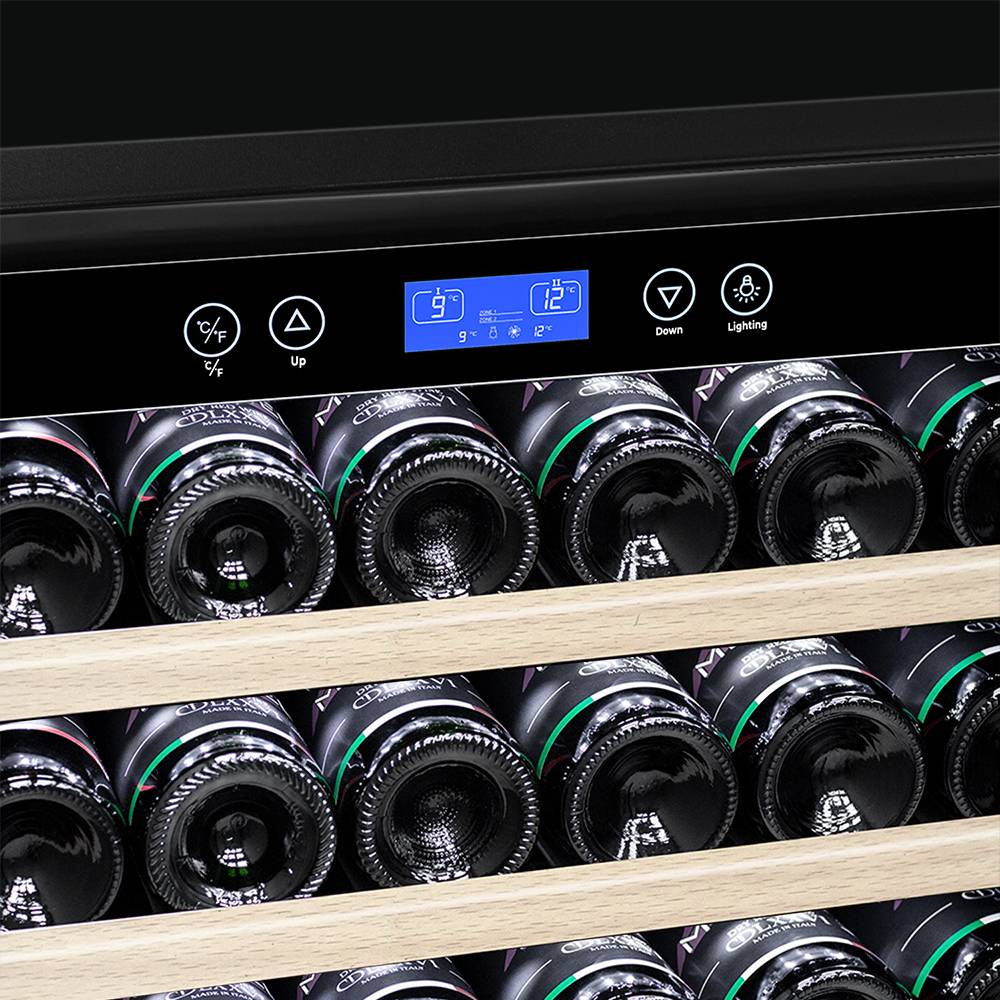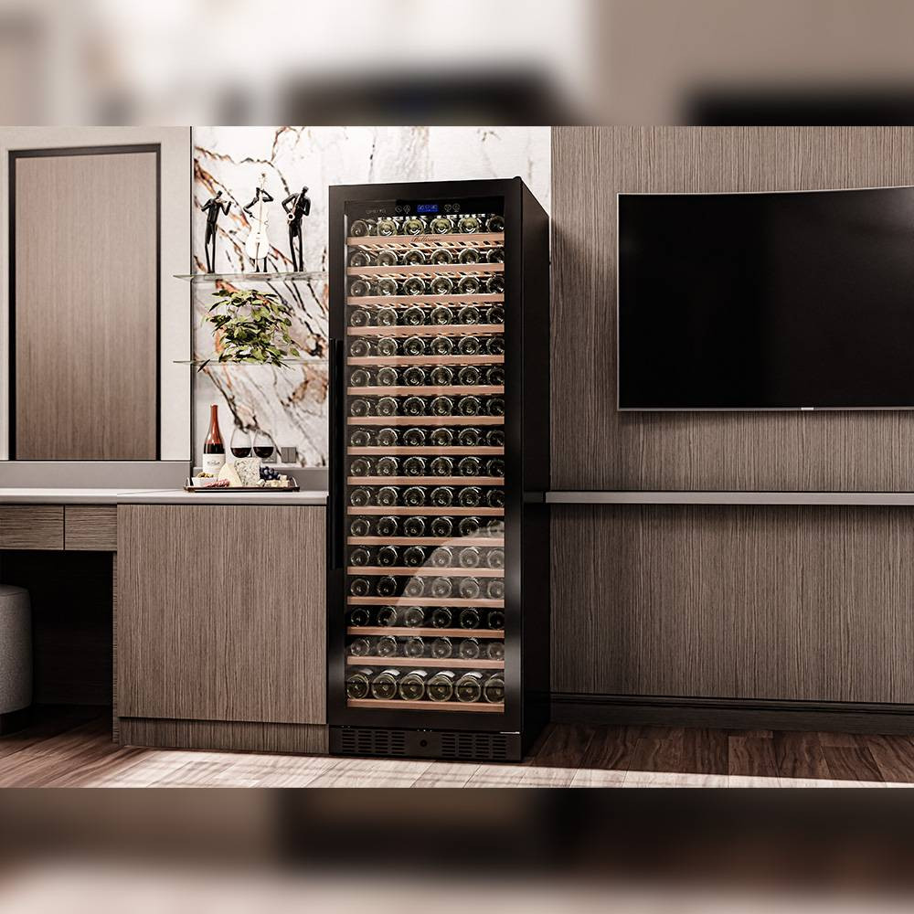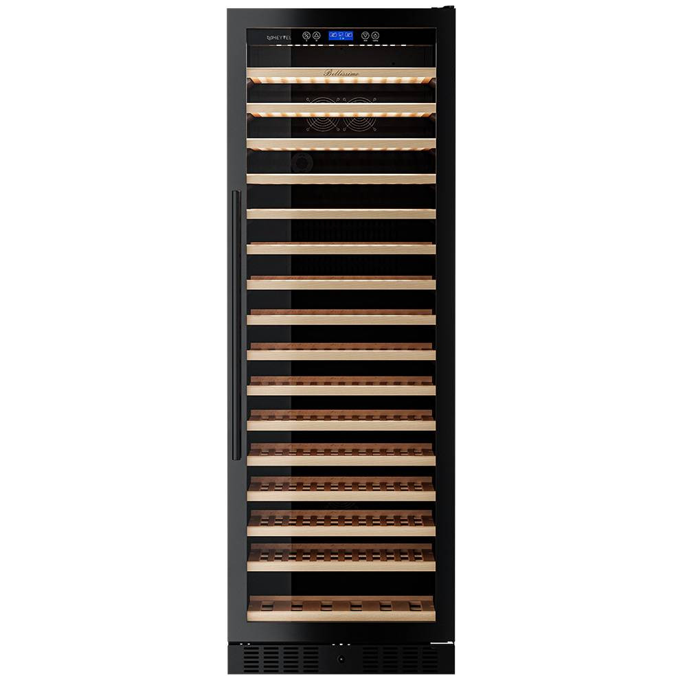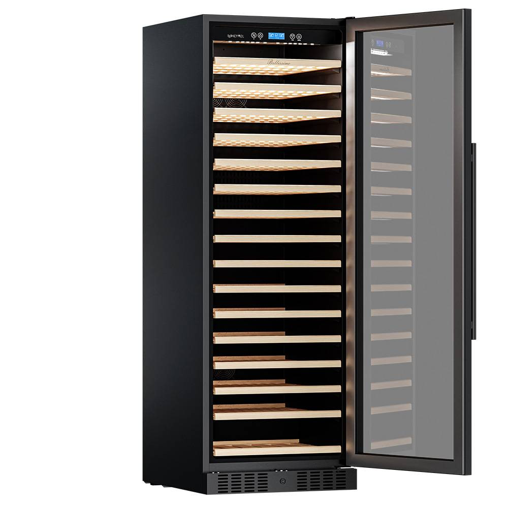 Шкаф имеет в комплекте 15 полок вместимостью до 12 бутылок типа «Бордо» и одну полку с увеличенным пространством на 6 бутылок типа «Магнум», что позволяет вам использовать шкаф для длительного хранения обширной коллекции вин вплоть до 186 бутылок.