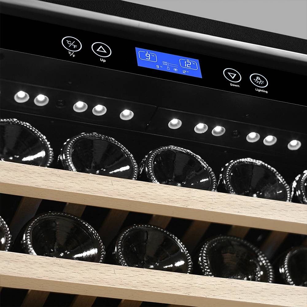 Винный шкаф оснащён дверью с защитой от ультрафиолетовых лучей, поддерживает внутреннюю влажность 60-80%, настройка температуры шкафа идёт в диапазоне от 5°C до 18°C, что позволяет создать условия, приближённые к условиям винного погреба, для длительного хранение коллекции ваших напитков, либо предварительно настроить температуру, необходимую для подачи разных видов вин.
