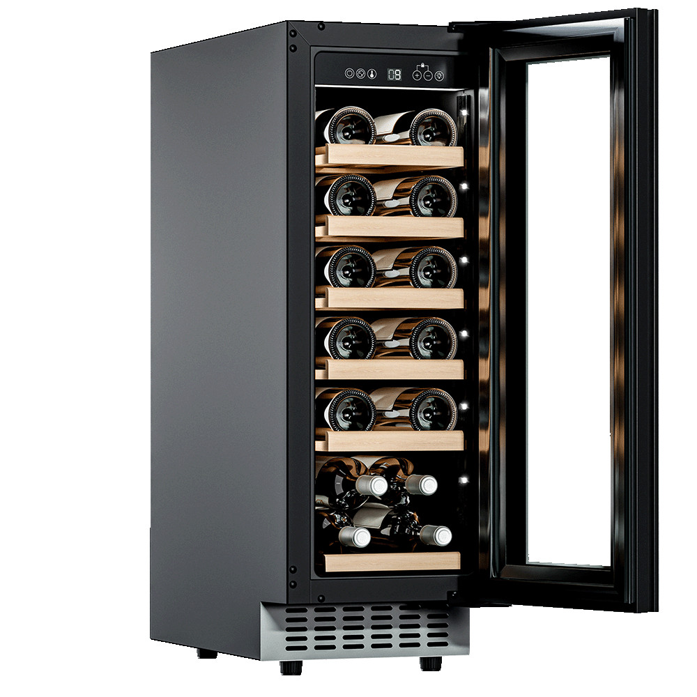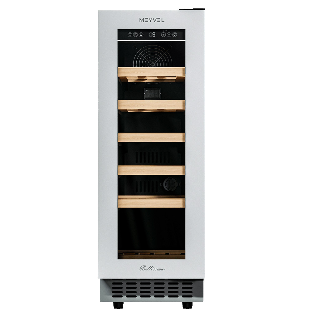 Компрессорный винный шкаф Meyvel MV19NH-KWT1 обладает оптимальной вместимостью и даёт возможность разместить до 19 бутылок стандартного типа Бордо (0,75 л). Располагаются они на выдвижных полках из дерева. Внутреннее пространство шкафа поддерживает комфортную для вина температуру от +5°C до +20°C. Так же, эта модель поддерживает влажность в диапазоне 60-80%, как в настоящем винном погребе.