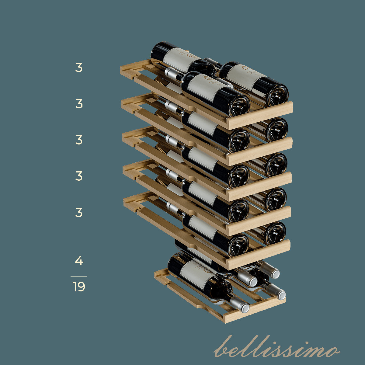 Вместимость 19 бутылок стандартного типа Бордо (0,75 л);
