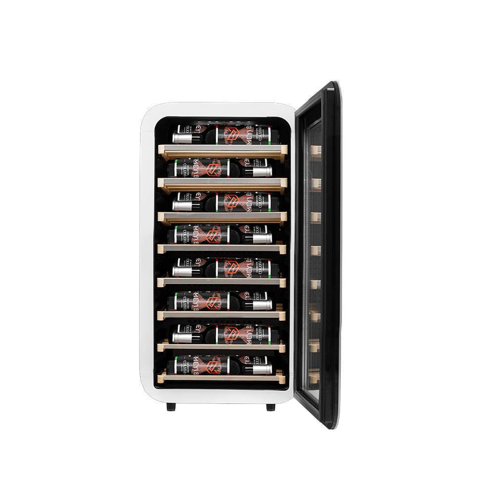 Компрессорный винный шкаф Meyvel MV22 обладает большой вместимостью и способен разместить до 22 бутылок. Располагаются они на полках из массива бука. Внутреннее пространство шкафа имеет одну температурную зону с диапазоном от +5°C до +18°C. Холодильник поддерживает влажность в диапазоне 60-80%, как в настоящем винном погребе.