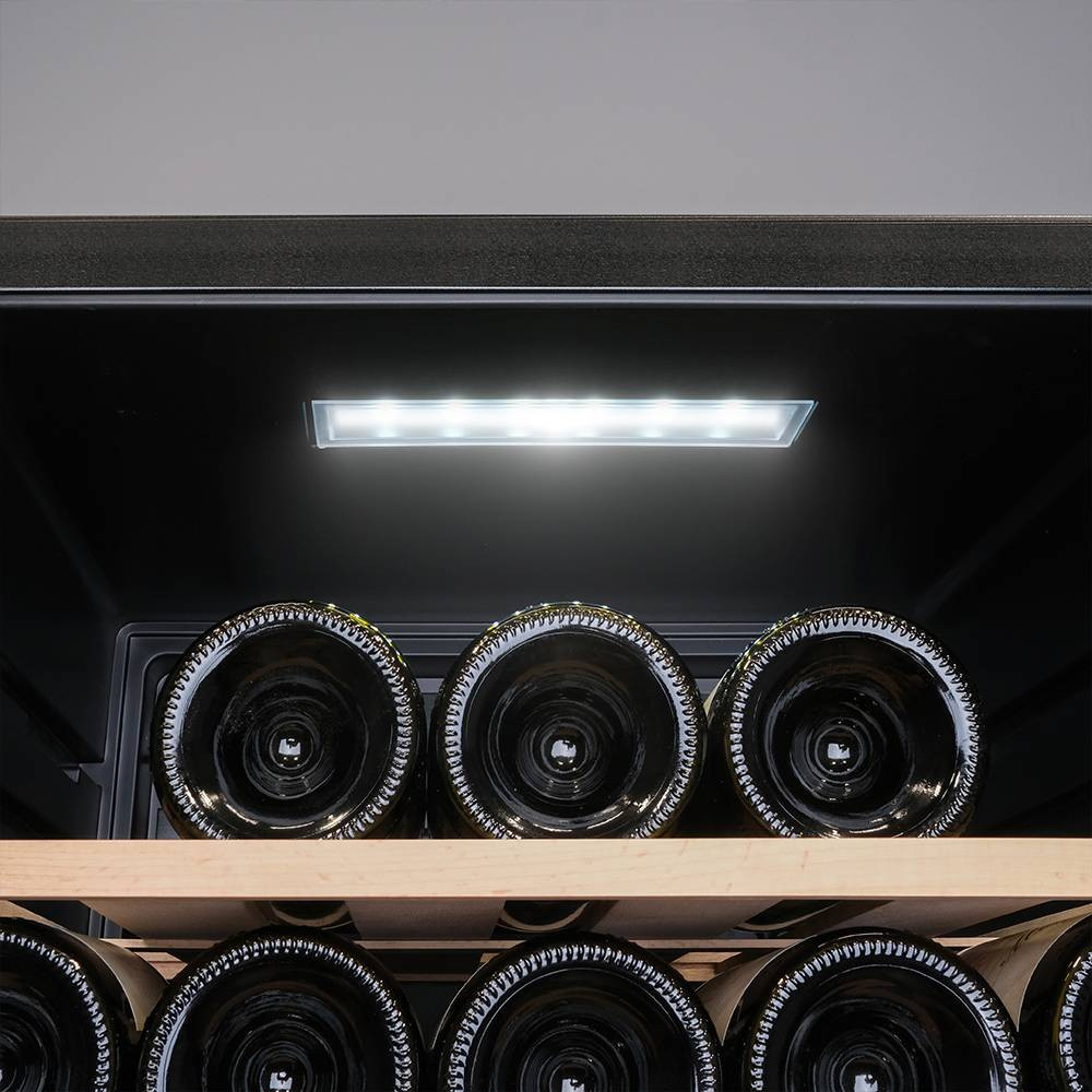 Сенсорное управление позволяет легко установить и поддерживать нужную температуру и влажность. А LED-подсветка придаёт шкафу элегантный вид и облегчает доступ к содержимому.