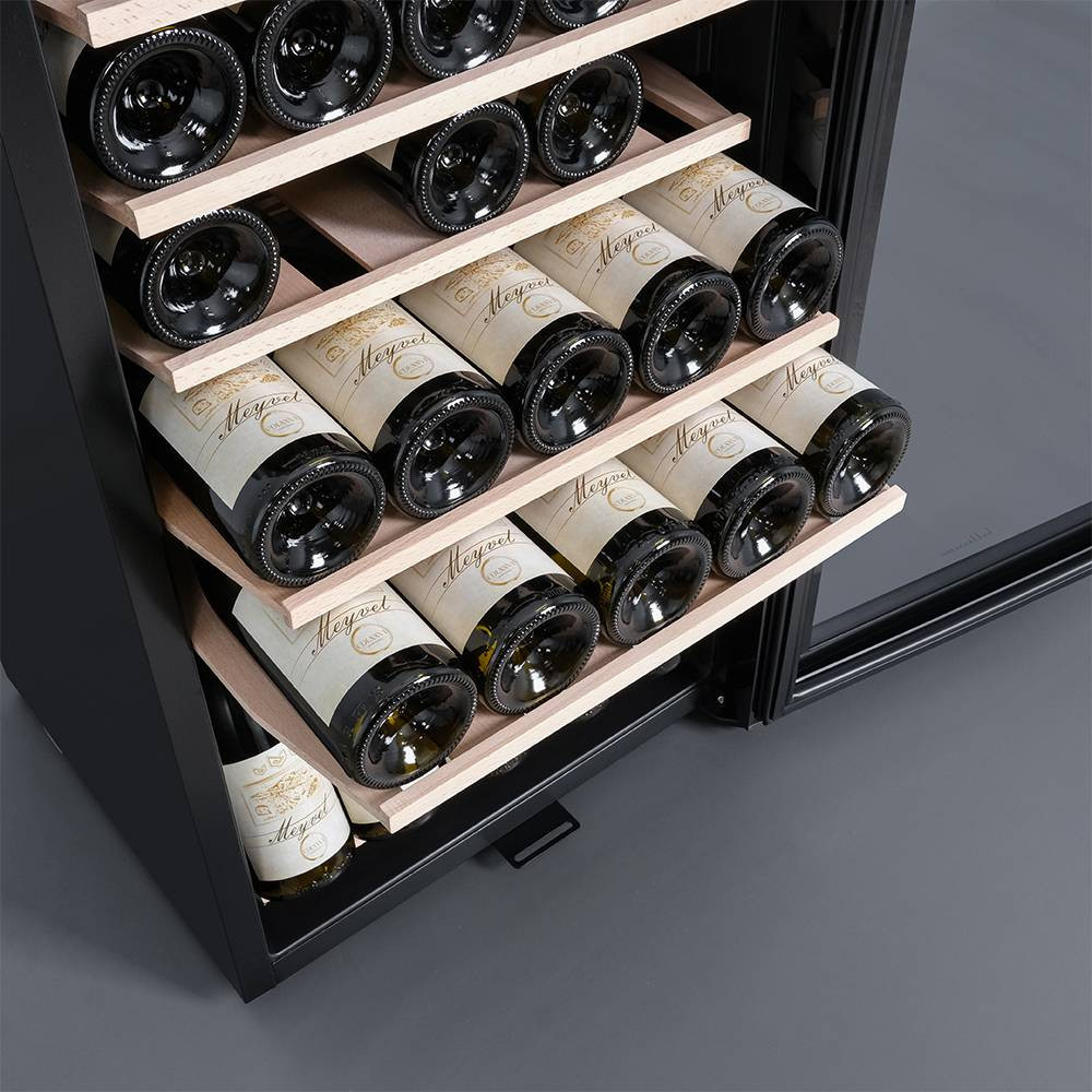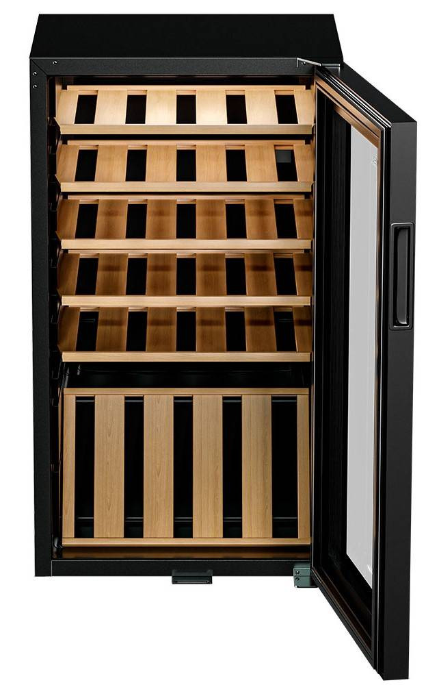 Выдвижные и демонстрационные полки позволяют грамотно организовать хранение бутылок и создать впечатляющую презентацию вашей коллекции вин.