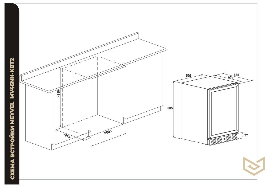 Meyvel MV46NH-KBT2 отлично подходит для расположения на любой кухне, модель имеет утопленную в дверце ручку, что придаёт встроенному шкафу более гармоничный вид. Шкаф можно встроить под столешницу, а так же, перенавесить дверь для более удобного использования