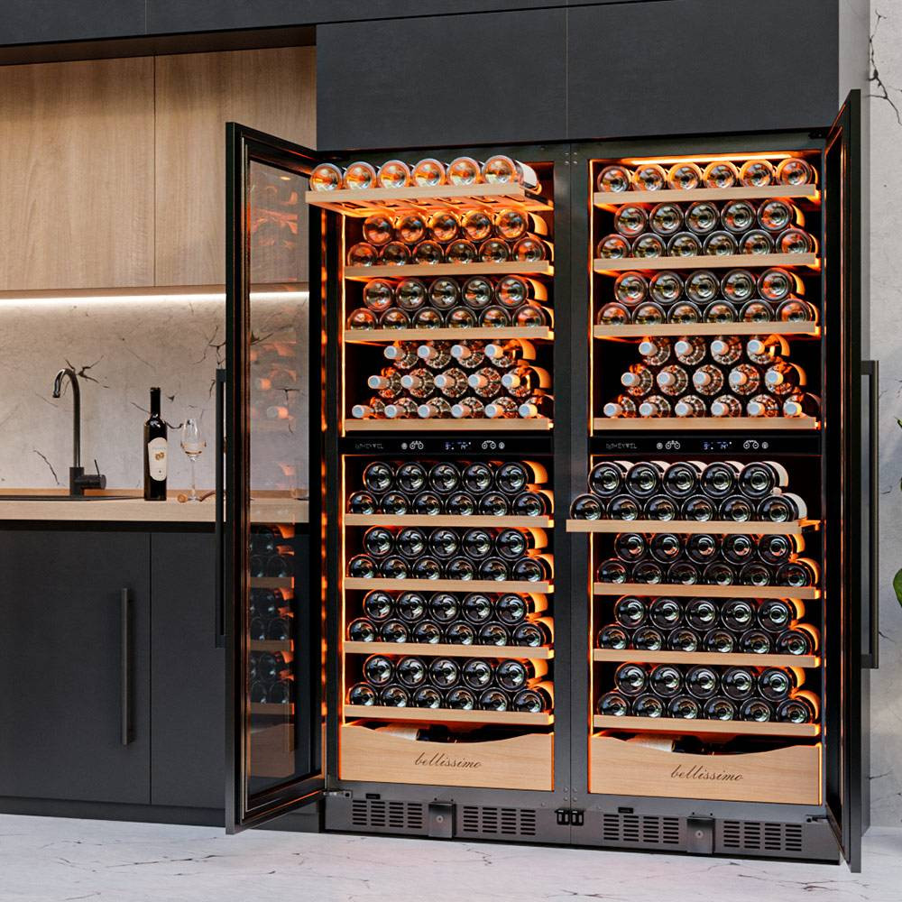Благодаря возможности перенавешивания двери, Вы можете установить два винных шкафа рядом и организовать систему Side-by-Side.