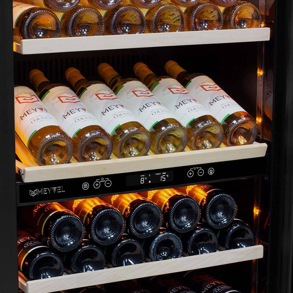 Внутренние пространство разделено на 2 зоны с возможностью раздельной настройки температуры. Так что Вы всегда сможете хранить все виды вин при идеальной температуре или установить разные значения, что бы напитки всегда были готовы к подаче.