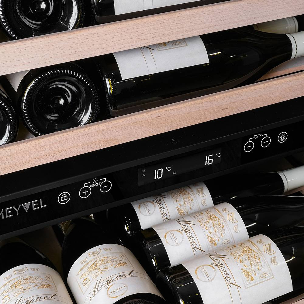 Внутреннее пространство разделено на две зоны с возможностью раздельной настройки температуры. Это позволяет хранить все виды вин при идеальной температуре или устанавливать разные значения, чтобы напитки всегда были готовы к подаче.