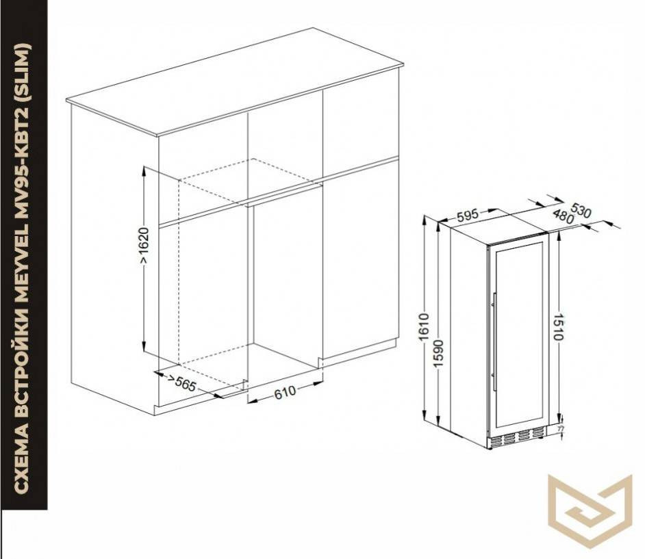 MV95-KST2 (Slim) отлично подходит для ресторанов. Он вмещает до 98 бутылок типа «Бордо» и имеет стильный дизайн, который прекрасно впишется в любой интерьер. Ручка, вентиляционная решётка и замок выполнены в цвете корпуса.