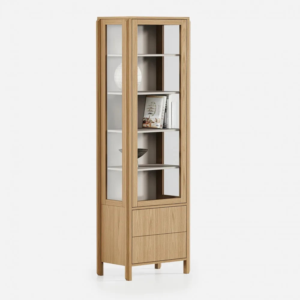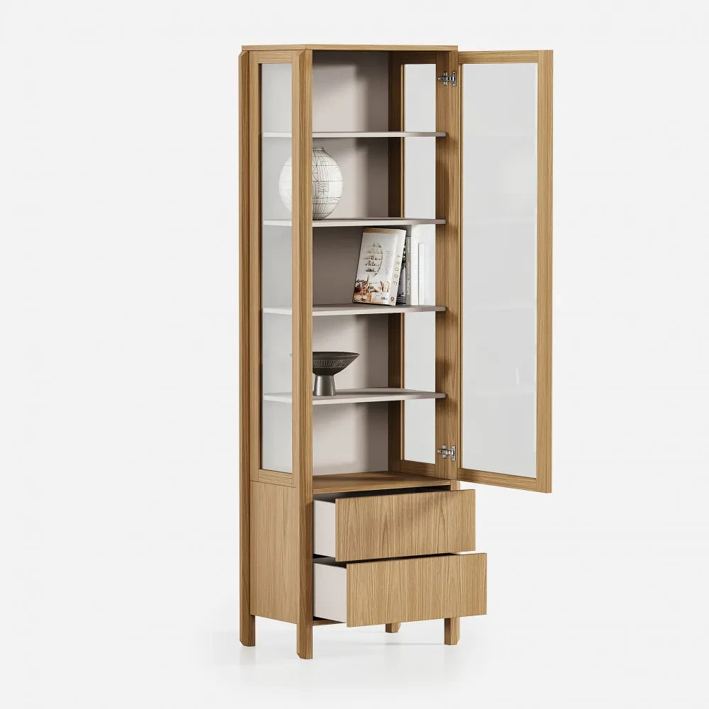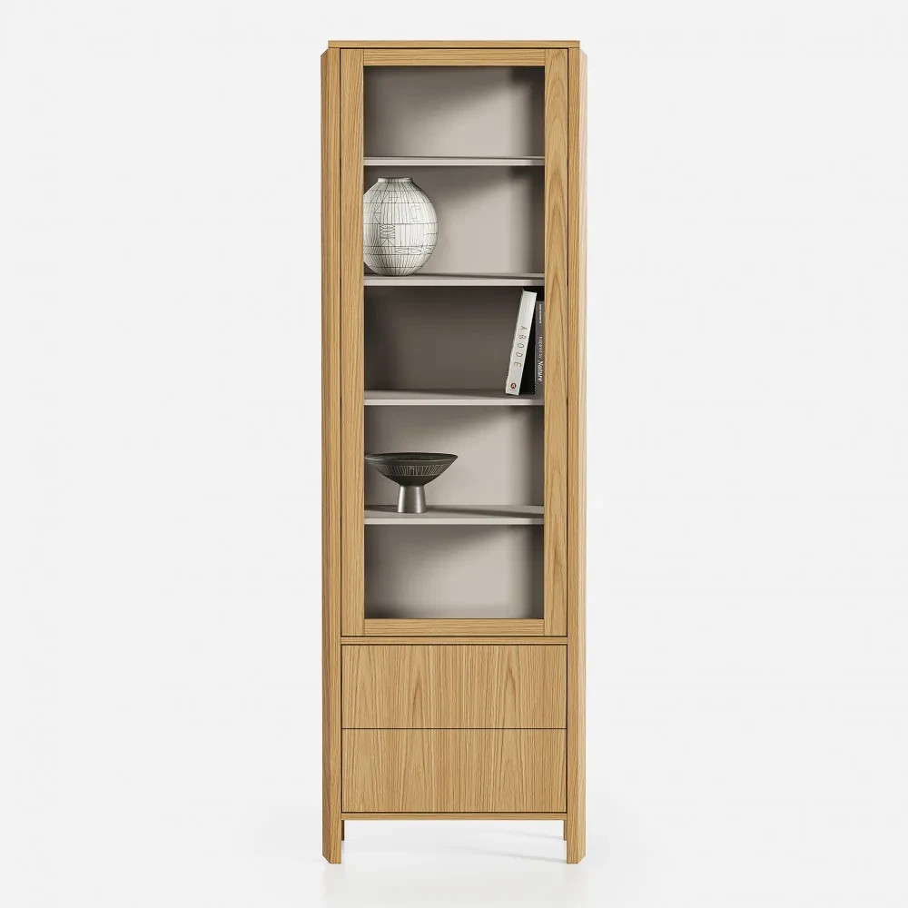 Благодаря дизайну, основанному на лаконичности и универсальности, витрина удачно впишется практически в любой интерьер. Глубокая текстура натуральной древесины дуба наполнит пространство уютом и сделает витрину украшением любого интерьера.