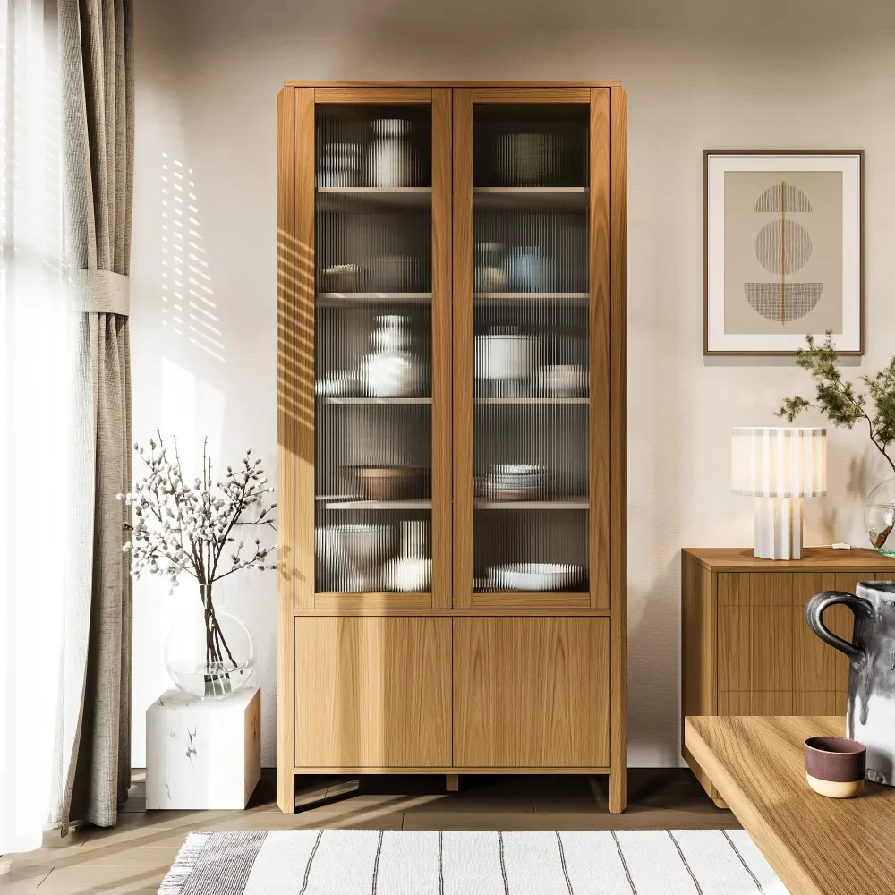 Витрина-буфет Japandi Batten 1 выполнена из натурального шпона европейского дуба. Ее образ объединяет минимализм, функциональность и элегантность скандинавского дизайна с утонченной простотой, характерной для японской эстетики.