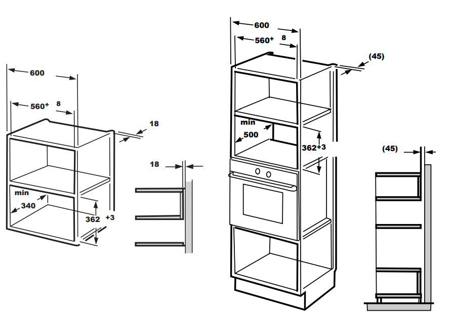 Размер ниши для встраивания в навесной шкаф (ШхГхВ), мм: 560x340x362