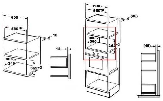 Размер ниши для встраивания в навесной шкаф (ШхГхВ), мм: 560х340х362