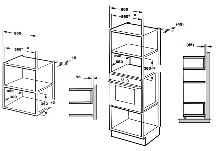 Размер ниши для встраивания в навесной шкаф (ШхГхВ), мм: 560x300x362