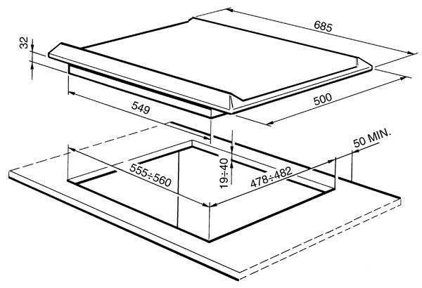Размеры ниши для встраивания (ВхШхГ) 40х560х482 мм
