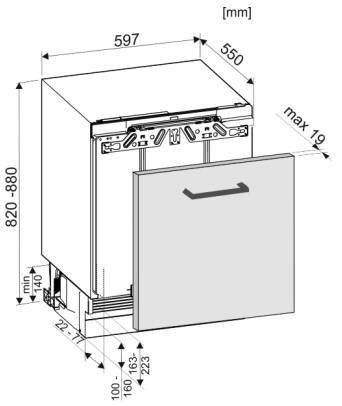 Габариты ниши Высота/Ширина/Глубина 82 - 88 / 60 / 55,0 см