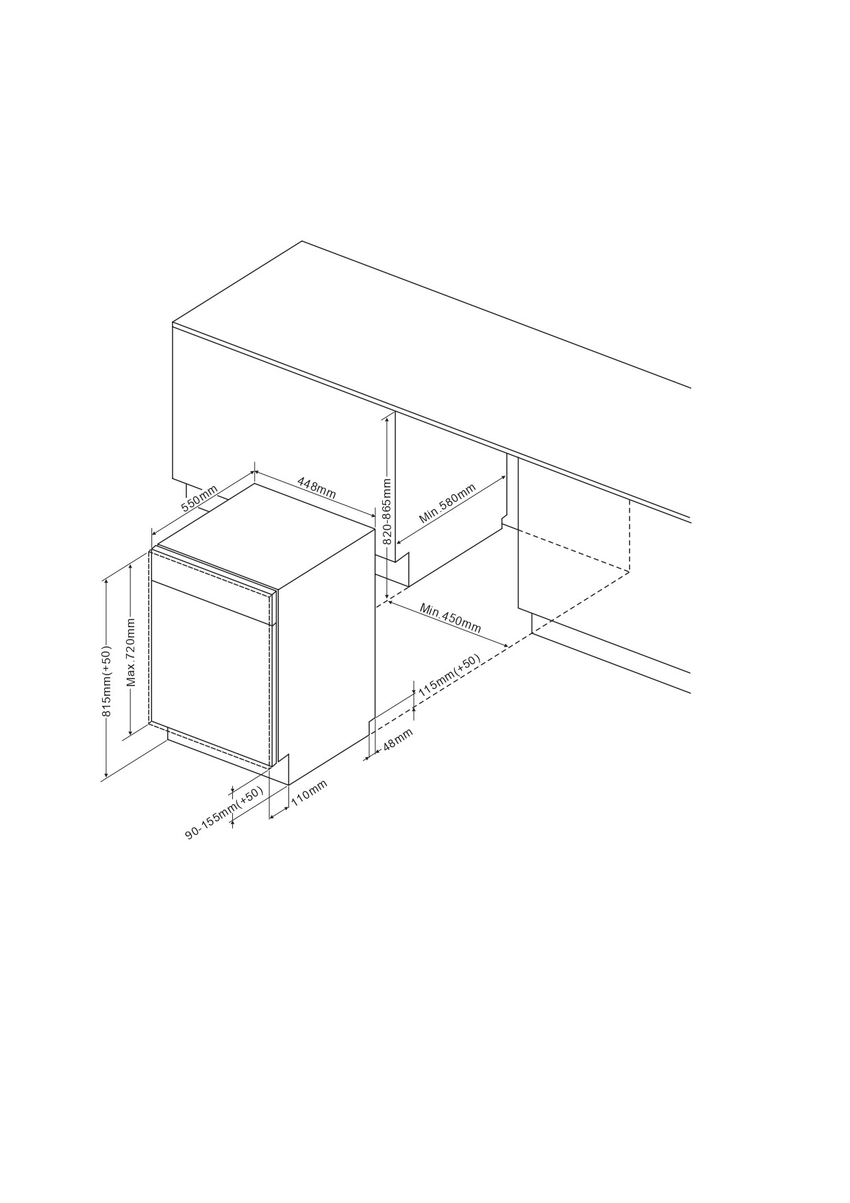 Размер ниши для встраивания (ВхШхГ), мм 820×450×580