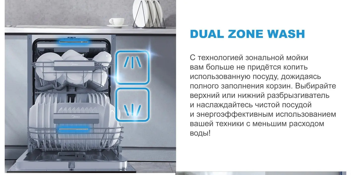 зональная мойка (выбор нижняя/верхняя корзина): Dual Zone Wash (Зональная мойка)