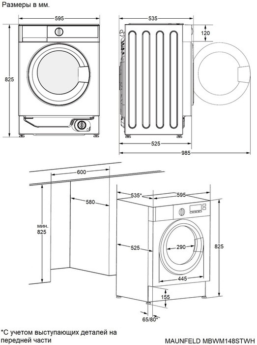 Встраиваемая стиральная машина с сушкой и паром MAUNFELD MBWM1486STWH