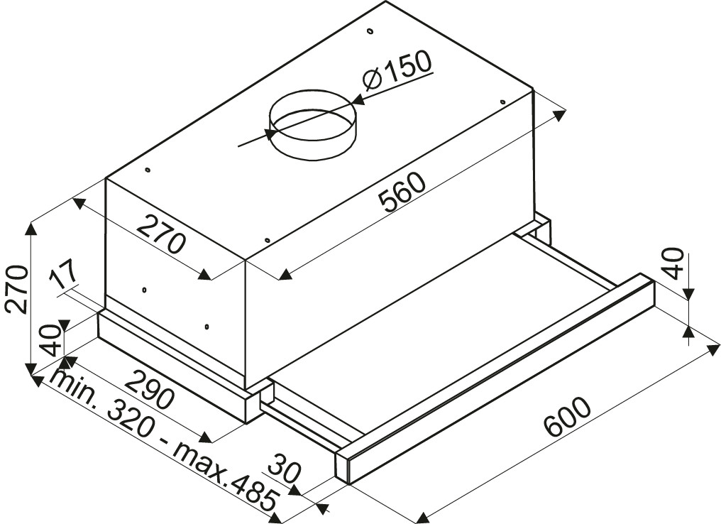 Размеры прибора без воздуховода ВxШxГ (мм): 270x600x320