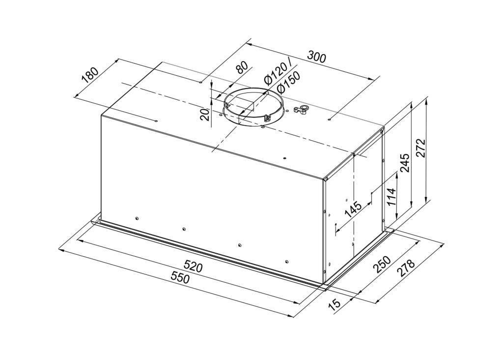Компактная, полностью встраиваемая вытяжка. Ее можно успешно разместить практически в каждом шкафу, благодаря чему она занимает очень мало места. Стильное сочетание закаленного стекла и окрашенной стали. Декоративный люк из закаленного стекла скрывает пятислойный алюминиевый, жироулавливающий фильтр. Стальной корпус окрашен матовой краской и покрыт защитным лаком изнутри и снаружи. Один из самых тихих и производительных моторов – мотор GPE (Производство Италия).  Класс энергоэффективности A+. Современное светодиодное освещение значительно снижает потребление энергии, 2 диодных светильника по 3 Вт превосходно освещают рабочую зону ярким и теплым светом. Кнопочное управление простое и удобное в использовании (мягкое нажатие).