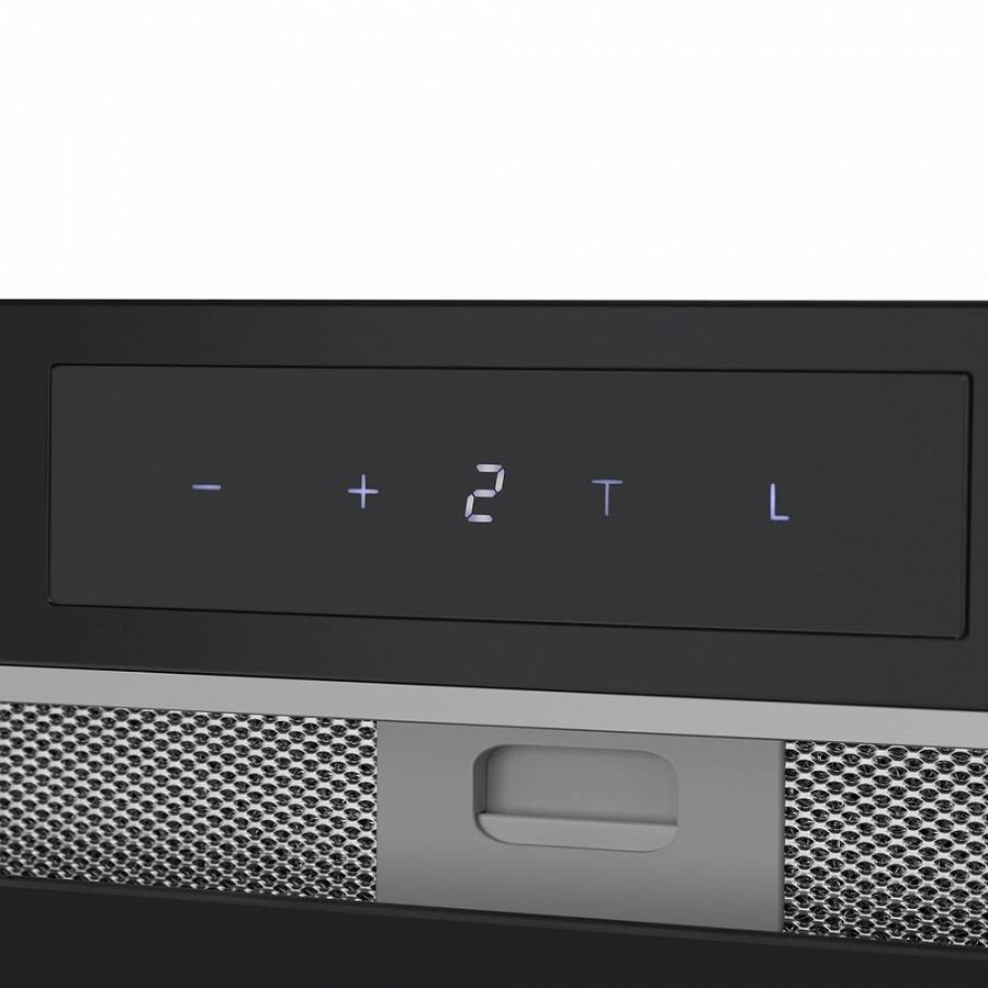 Встраиваемая вытяжка из высококлассной стали, нижняя панель отделана тонированным стеклом, встраивается в шкаф над поверхностью плиты. Дизайн великолепно впишется в любой кухонный интерьер и благодаря высокому качеству материалов прослужит десятилетия.