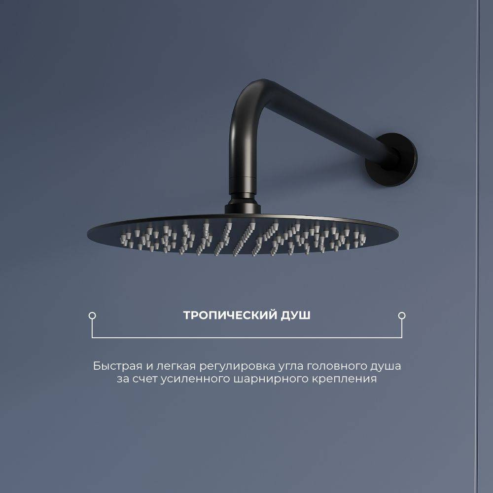 · Головной душ, горизонтальный держатель из нержавеющей стали. Головной душ оснащён шарнирным креплением, что позволяет выбрать необходимый угол направления воды