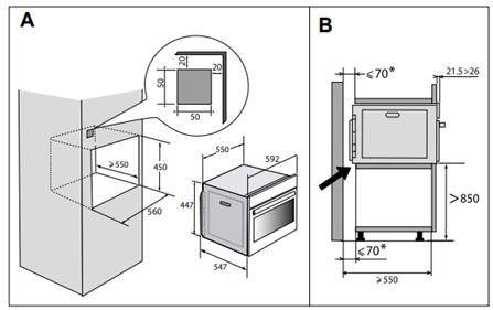 Габариты ниши для встраивания ВхШхГ, мм: 450х560х550