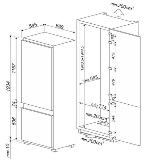 Габариты ниши для встраивания (В х Ш х Г), см 194.3-194.4x71.4x56.3