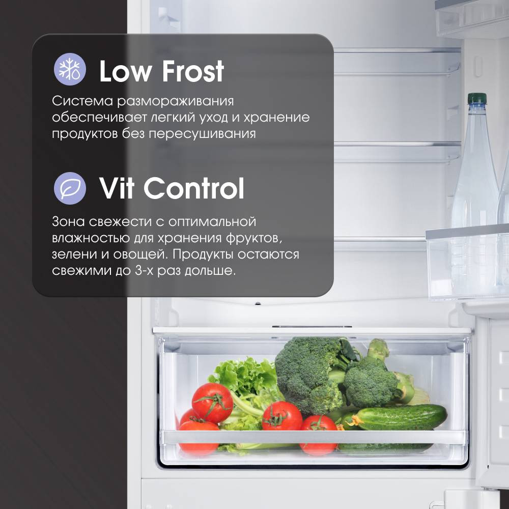 Конструктивные особенности: 4 полки из закаленного стекла, 1 выдвижной ящик, 3 полки на двери, полка для яиц, 3 выдвижных ящика в морозильной камере, светодиодное освещение камеры, перевешиваемая дверца