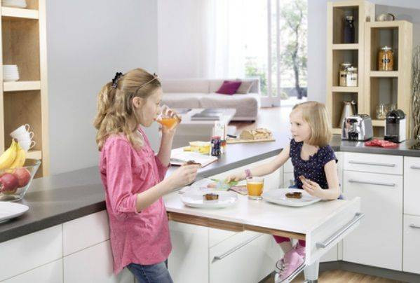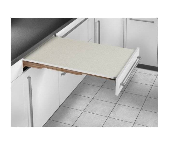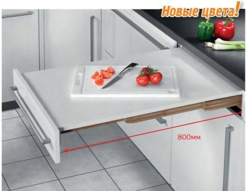 Дополнительная рабочая поверхность выдвигается из нижнего шкафа на 800 мм!
