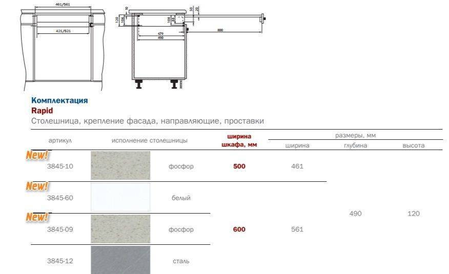 Размер столешницы в выдвинутом состоянии: 521х800 (мм);