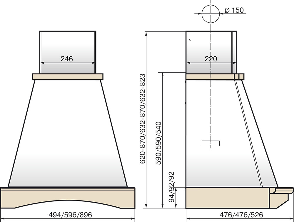 Вытяжка купольная Elikor Ротонда 60П-650-П3Л бежевый/дуб крем+патина золото 923084