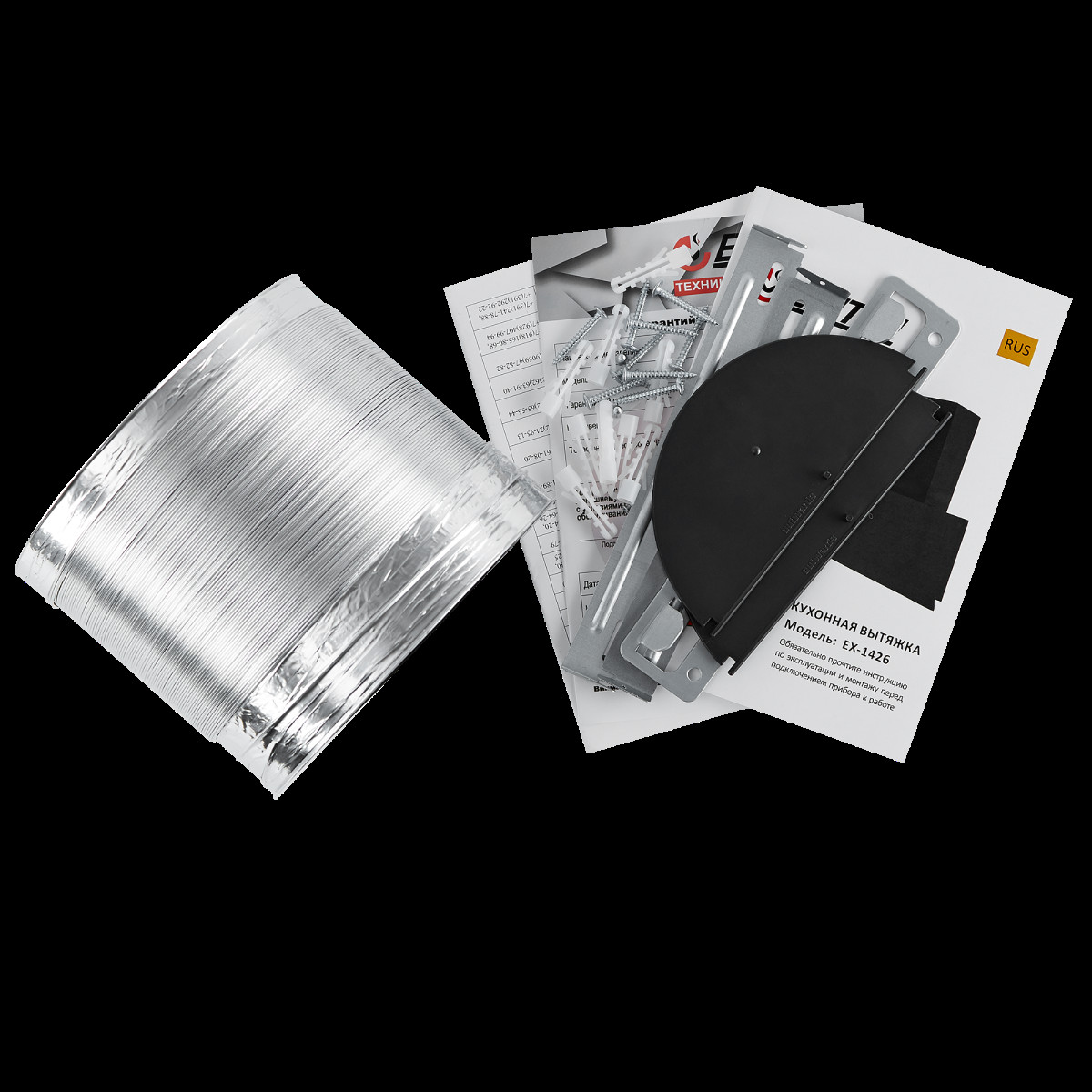 В комплекте: крепеж, кожух, гофра, инструкция