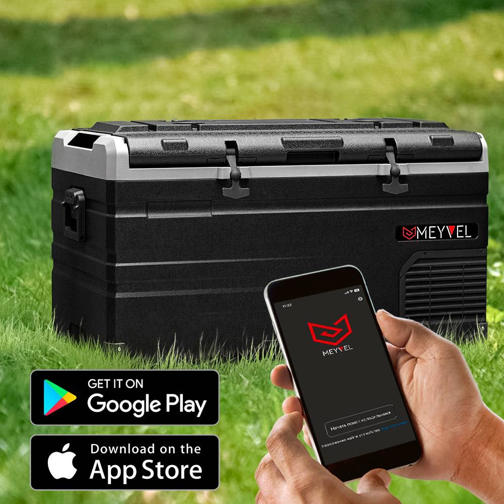 Сенсорная панель управления имеет дисплей, с отображение всех изменяемых параметров. Дизайнеры и инженеры Meyvel позаботились о Вашем комфорте и разработали мобильное приложение “MEYVEL CAR FRIDGE”, благодаря которому Вы можете управлять холодильником всего лишь одним касанием. Включайте и отключайте автомобильный холодильник, меняйте и настраивайте температурный режим прямо в дороге. Теперь, когда управление авто холодильником стало простым и понятным, Вам и Вашим близким остается лишь наслаждаться путешествием.