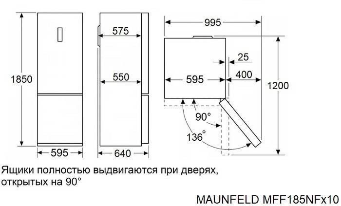 В комплекте: 3 полки, 4 ящика, полки в двери, поддоны для яиц, формочка для льда, решетка для бутылок.