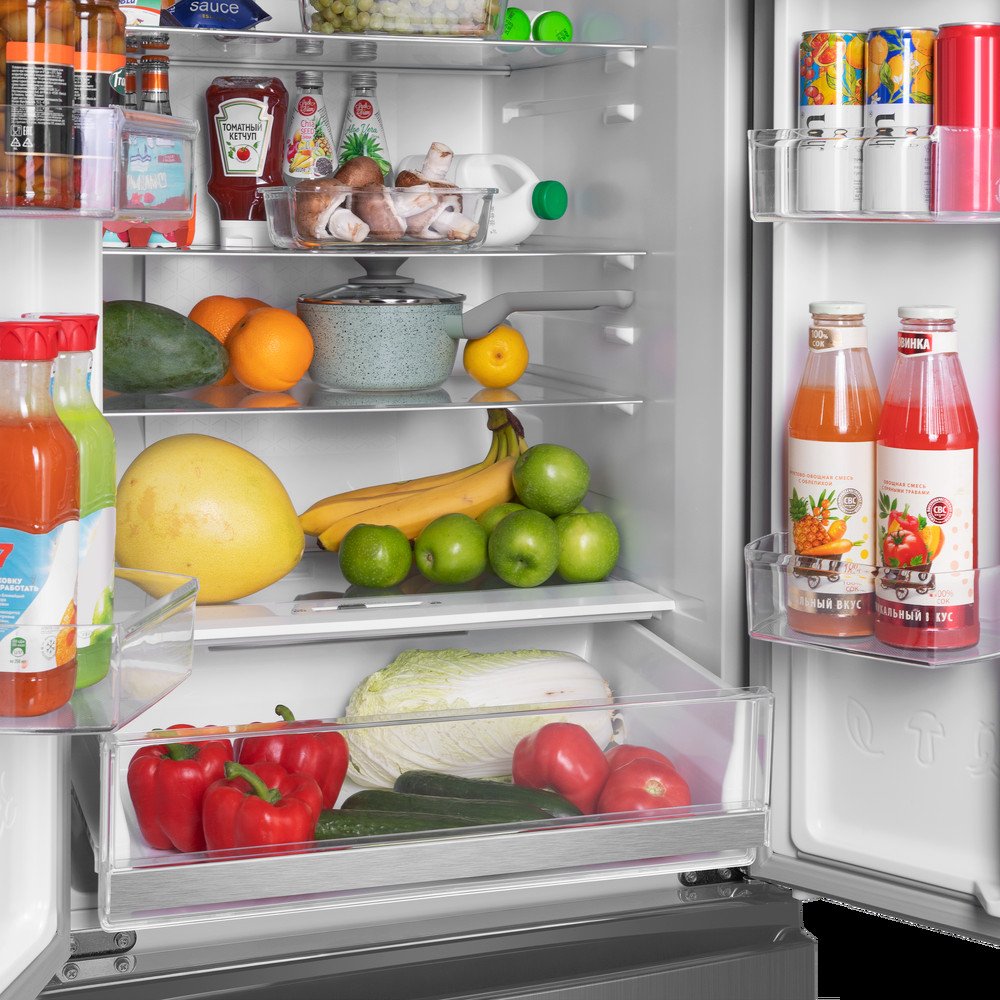 Регулируемые по высоте полки позволяют легко группировать продукты по типу. Организация продуктов внутри холодильника стала ещё удобнее.