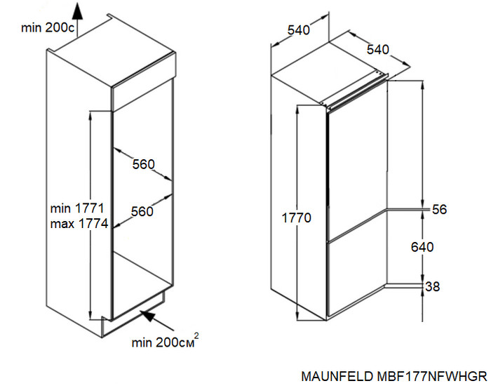 Холодильник-морозильник встраиваемый MAUNFELD MBF177NFWHGR Inverter