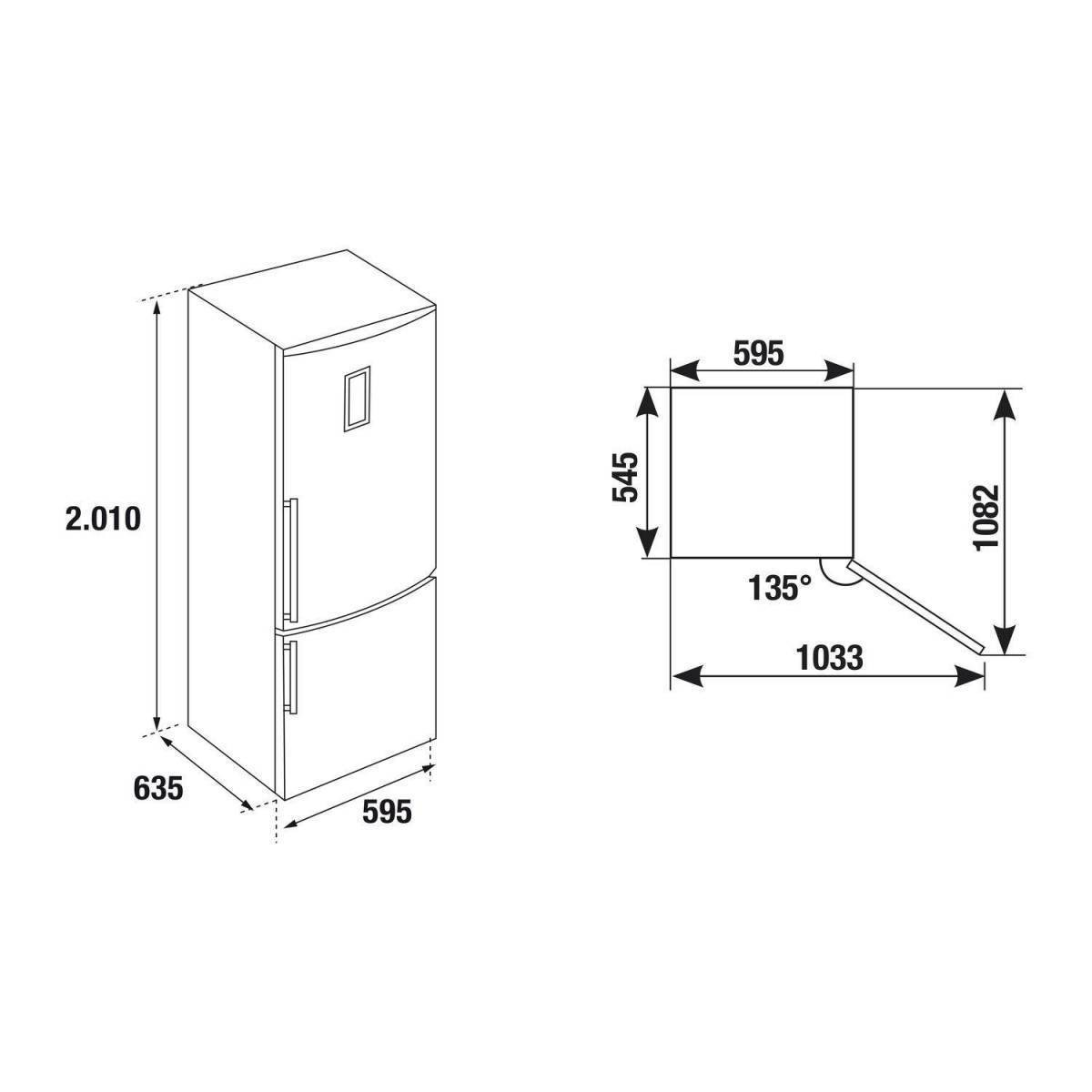 Тип установки: отдельностоящий, полноразмерный двухкамерный холодильник