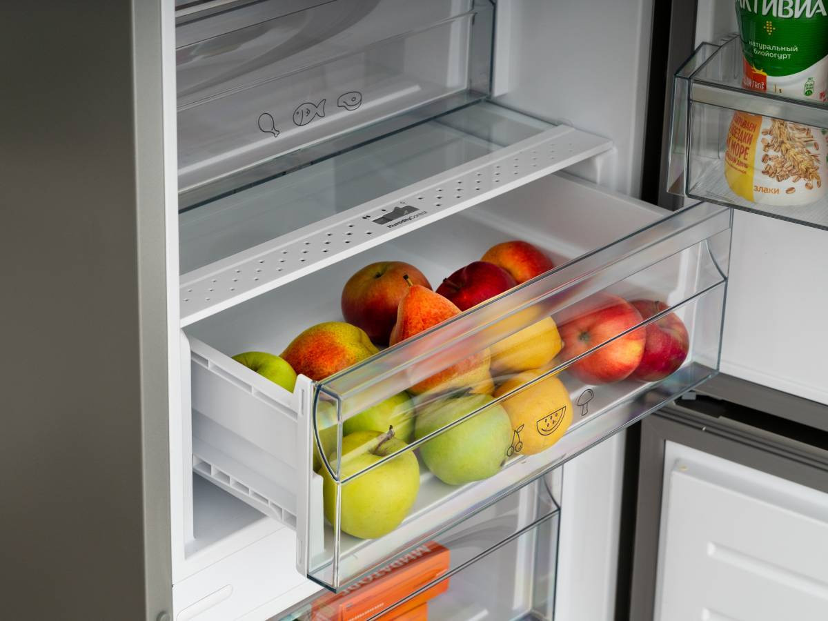 Зона свежести: можно хранить как фрукты/овощи/зелень, так и мясо/рыбу, температура регулируется в зависимости от вида размещенных продуктов
