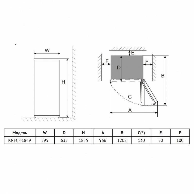 Габариты: ширина 595 мм, глубина 635 мм, высота 1953 мм — оптимальное решение для любой кухни